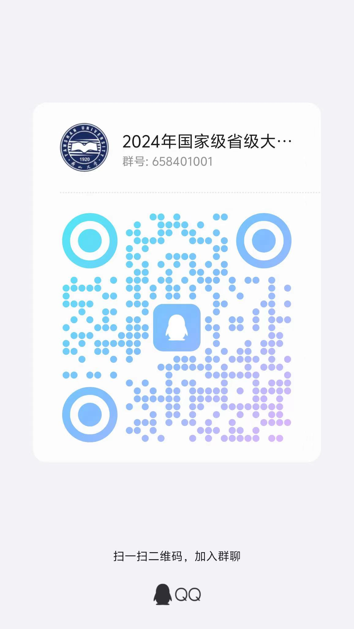 1.请各项目团队负责人加入2024拟推荐省国级大创项目管理群,进群修改备注:项目名称+负责人姓名。请各项目团队务必加入此群,后续通知将在群中发布。