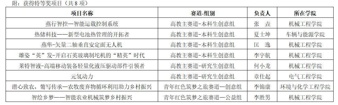 本次选拔赛中,《燕行智控—智能运载控制系统》等8个项目获得特等奖,《磁兼容辅助脑部立体定向辅助手术机器人》等16个项目获得一等奖,《地磁备安—压力设备在线无损检测技术的先行者》等24个项目获得二等奖,《康养助手—可拓展空间的智能轮椅》等30个项目获得三等奖,《智造精工—智能机械用高频精准比例电磁铁打造者》等132个项目获得优秀奖。