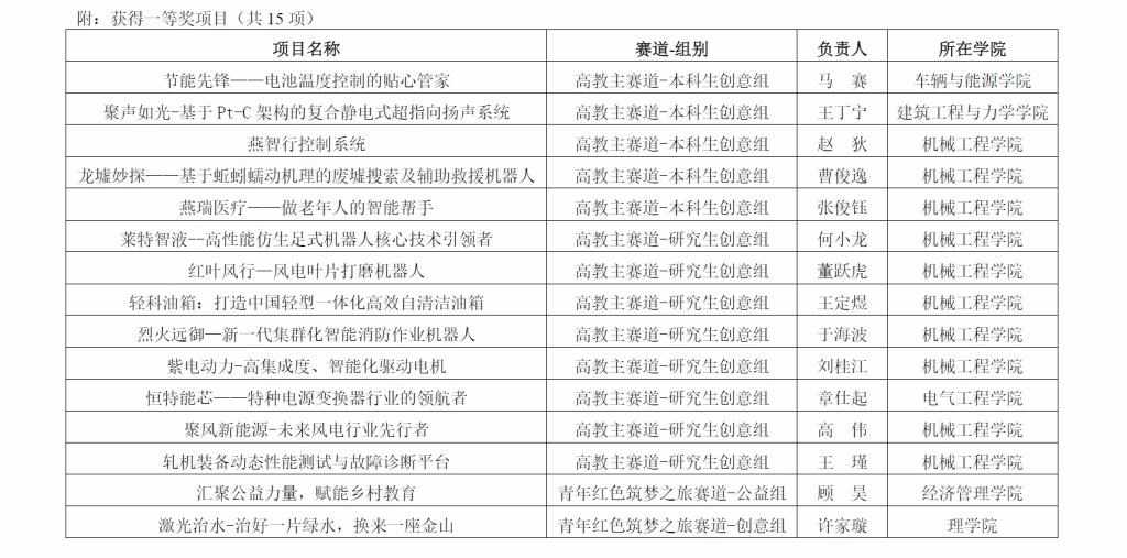 本次选拔赛中,《节能先锋——电池温度控制的贴心管家》等15个项目获得一等奖,《履行者“没有过不去的坎儿”——基于摆臂双履带与底部抓钩组的智能爬楼轮椅》等25个项目获得二等奖,《基于虚拟现实下肢康复机器人》等35个项目获得三等奖,《高度可调式可连续换乘海上舷桥》等126个项目获得优秀奖。