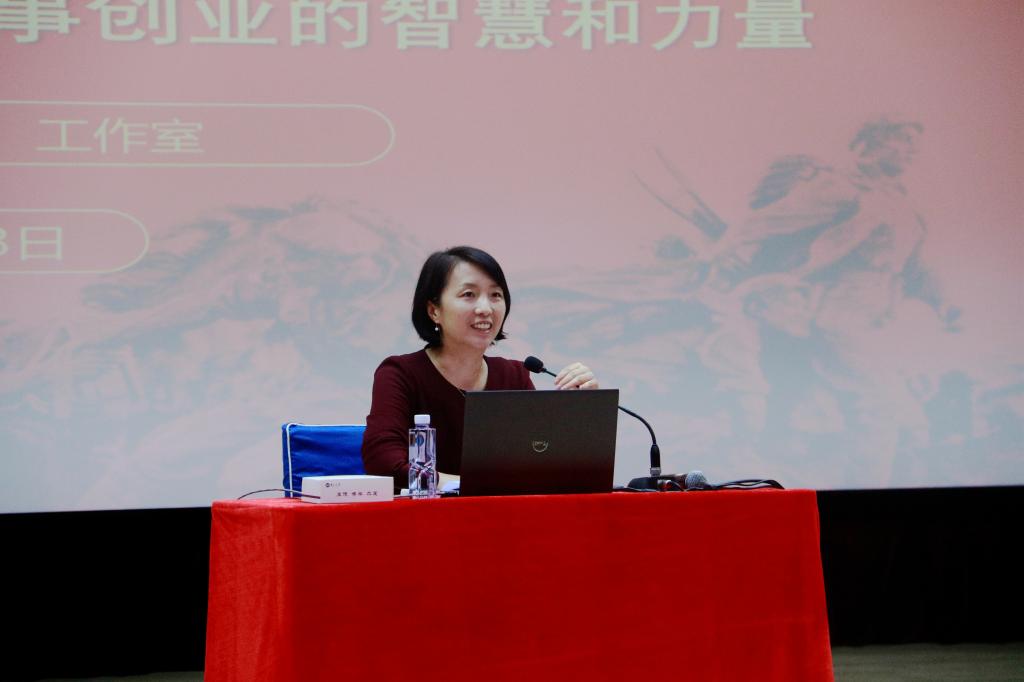 北京科技大学党委宣传部长尹兆华教授讲授了课程第一讲。她介绍了《跟党学创业》课程的建设背景,从理念、内容、方式等方面解读了“思创融合”的初心和具体做法。在授课过程中,她以“党是伟大的创业组织”为视角,以“党的百年发展奋斗史”为元素,以“厘清创业逻辑+聚焦核心知识+融入党史故事”为思路,以马克思主义在世界范围的传播、抗日战争、抗美援朝、全球化下的信息技术浪潮为案例背景,以互动启发的方式,带领学生感悟百年党史穿越时空的无穷魅力,向学生阐述了新时代我们面临怎样的机会?如何识别机会?如何抓住机会?她鼓励学生胸怀理想、敢闯敢试、敢为人先,成为堪当民族复兴重任的时代新人。
