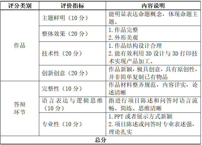 入围的作品通过现场答辩,参赛者依据作品模型、效果图、设计理念进行介绍,评委从作品完整度、创新性、美观性、打印可行性四个维度遴选出参赛作品进入制作环节。
