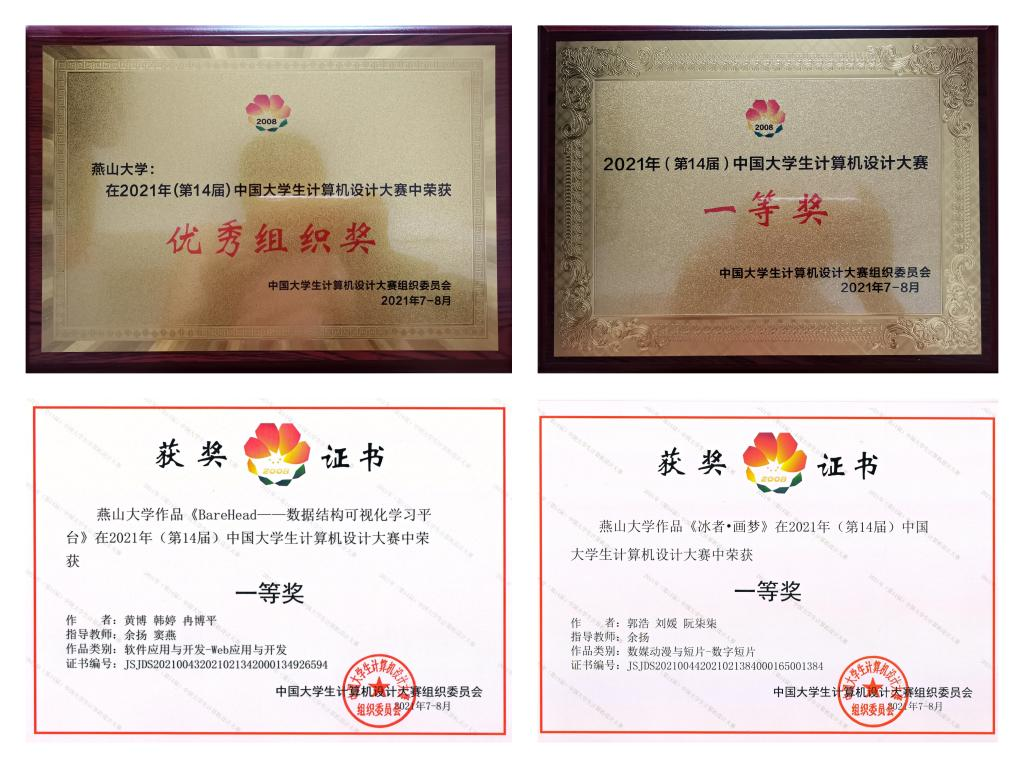 近日,历时半年的2021年(第14届)中国大学生计算机设计大赛国赛结果揭晓,我校共获得国家级一等奖2项,国家级二等奖6项,国家级三等奖13项,同时我校获得“优秀组织奖”荣誉称号。