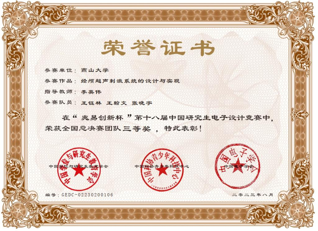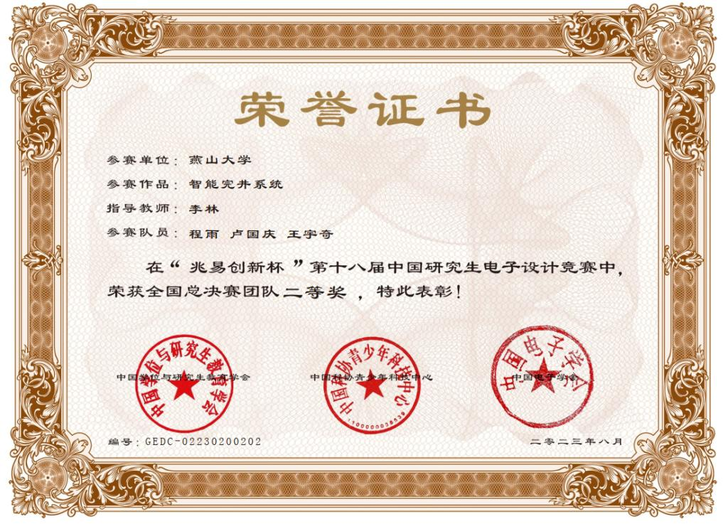 8月17日,“兆易创新杯”第十八届中国研究生电子设计竞赛国赛结果揭晓。我校在本届大赛国赛中再次喜获佳绩,共获得国家级二等奖1项、国家三等奖1项、华北赛区二等奖6项,华北赛区三等奖1项。其中来自信息科学与工程学院(软件学院)的参赛作品《智能完井系统》获得国家级二等奖、《经颅超声刺激系统的设计与实现》获得国家三等奖。