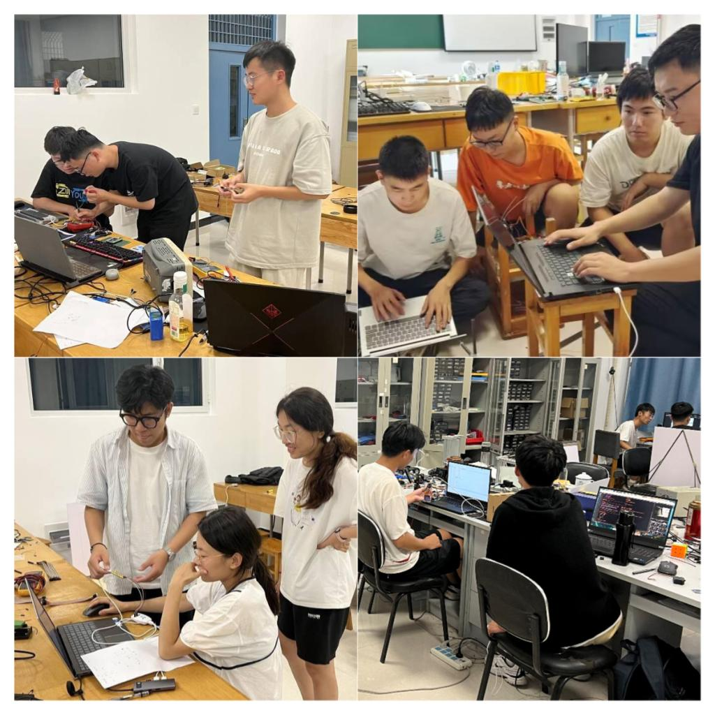 本届竞赛得到了学校创新创业教育与指导中心和各学院的大力支持,依托信息科学与工程学院创新创业教育基地优秀教学资源,从2022年秋季学期开始筹备比赛事项,遴选队员,配备专业教师对学生进行了基础培训。并利用暑假在电子与通信工程系创新创业教育基地进行了针对电赛的高强度集中专项训练,赛前根据比赛具体环节有针对性的进行了选题分析、方案论证、设计调试、报告撰写等内容的专项指导。学生在竞赛的四天三夜中通宵作战、废寝忘食、不畏困难、一丝不苟地完成了题目要求。通过竞赛,充分锻炼了学生的综合知识运用设计、分析解决问题和团队协作能力。