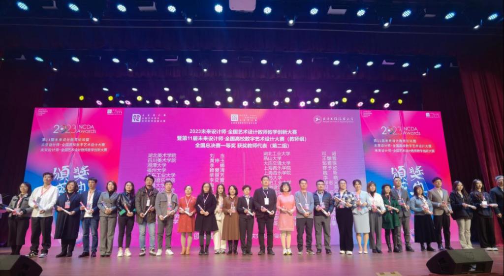 本届未来设计师·全国艺术设计教师教学创新大赛(教创赛)现场答辩环节分为本科组和专科组,采取选手汇报和专家提问的方式进行。选手们充分展示了参赛课程的特色优势和创新点,经过综合评定,最终产生了33名一等奖和44名二等奖。经过激烈的角逐,艺术与设计学院王媚雪教学团队以《智能产品专题创新设计》参赛课程获得总决赛一等奖。担任此次总决赛的评委均为清华大学美术学院、中国美术学院、湖北美术学院、江南大学、南京艺术学院、同济大学等国内知名高校的专家学者。此次大赛历时10个月,共有465所高校的1773支参赛队伍,参赛教师共7252名,参赛队伍和教师数量均比上一届有了大幅提升。