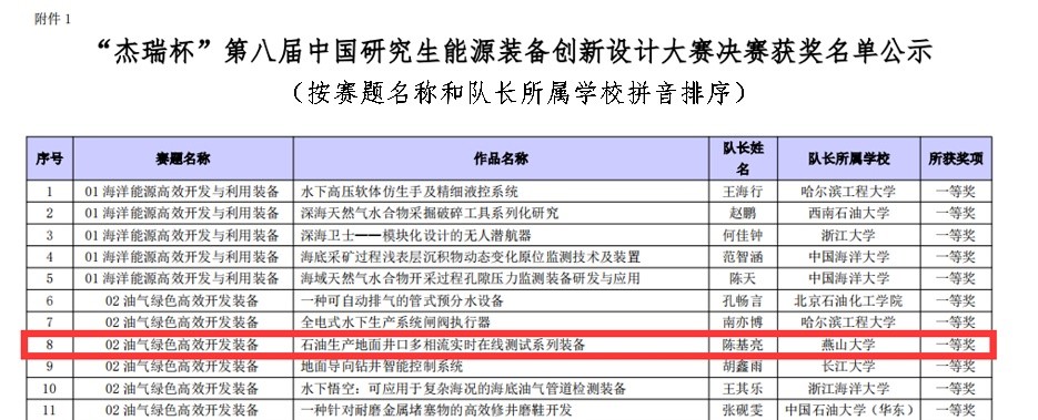 “杰瑞杯”中国研究生能源装备创新设计大赛是“中国研究生创新实践系列大赛”主题赛事之一,由教育部学位与研究生教育发展中心和中国科协青少年科技中心联合举办。本届大赛以“竞赛培养人才、人才引领创新、创新驱动发展”为主题,涵盖海洋能源、油气资源、风能、太阳能等多类高效开发能源装备的创新设计,共吸引全国170所高校、院所的1261项作品参赛,参与学生5339人。
